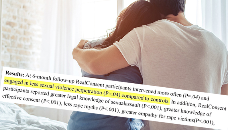 Funded by CDC and NIH, randomized, controlled trials with 1500 students tested showed significant reduction in sexual violence